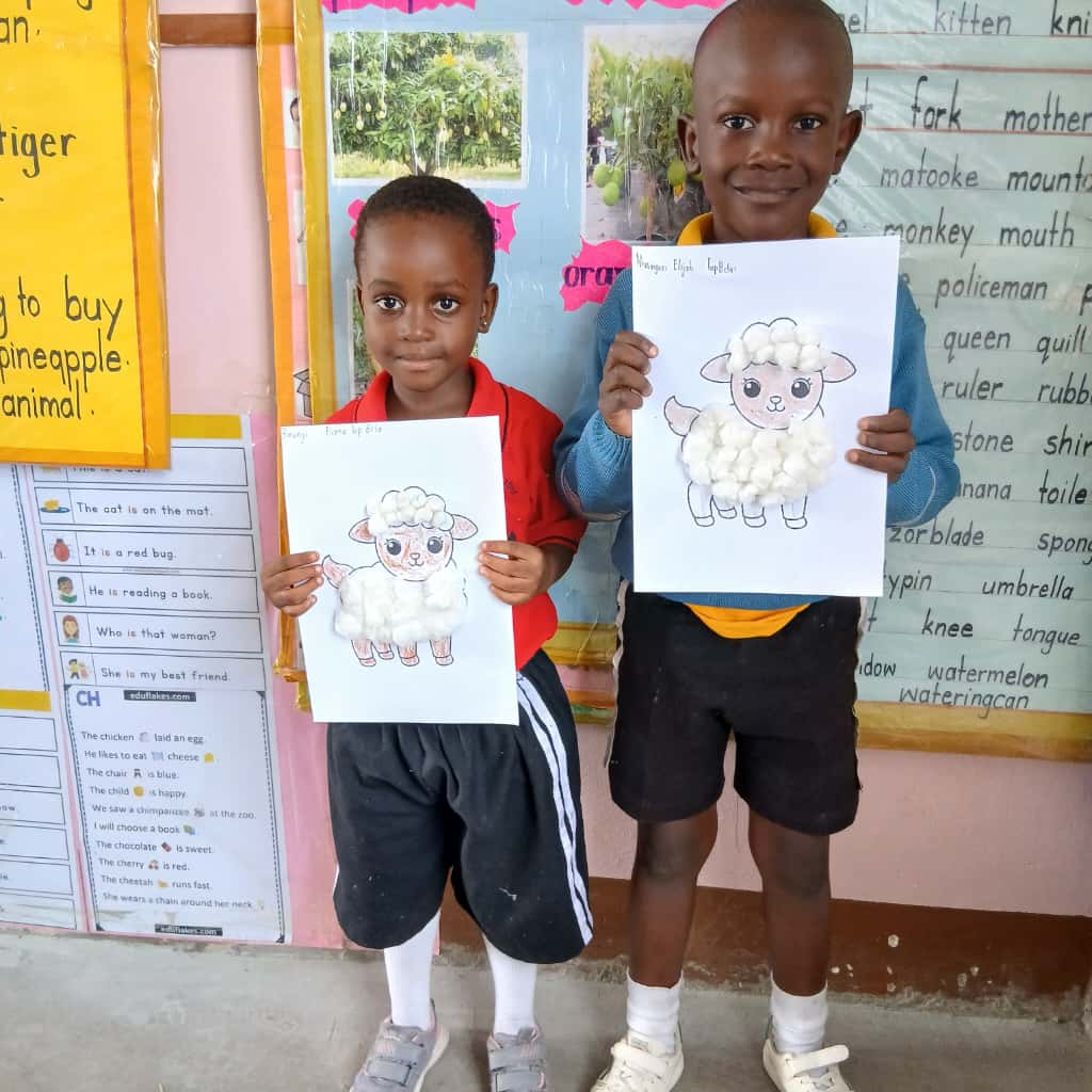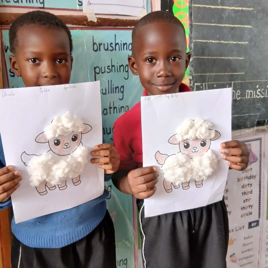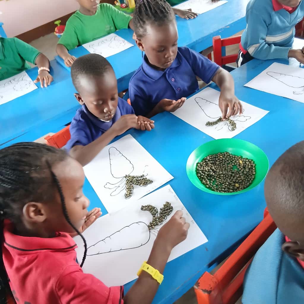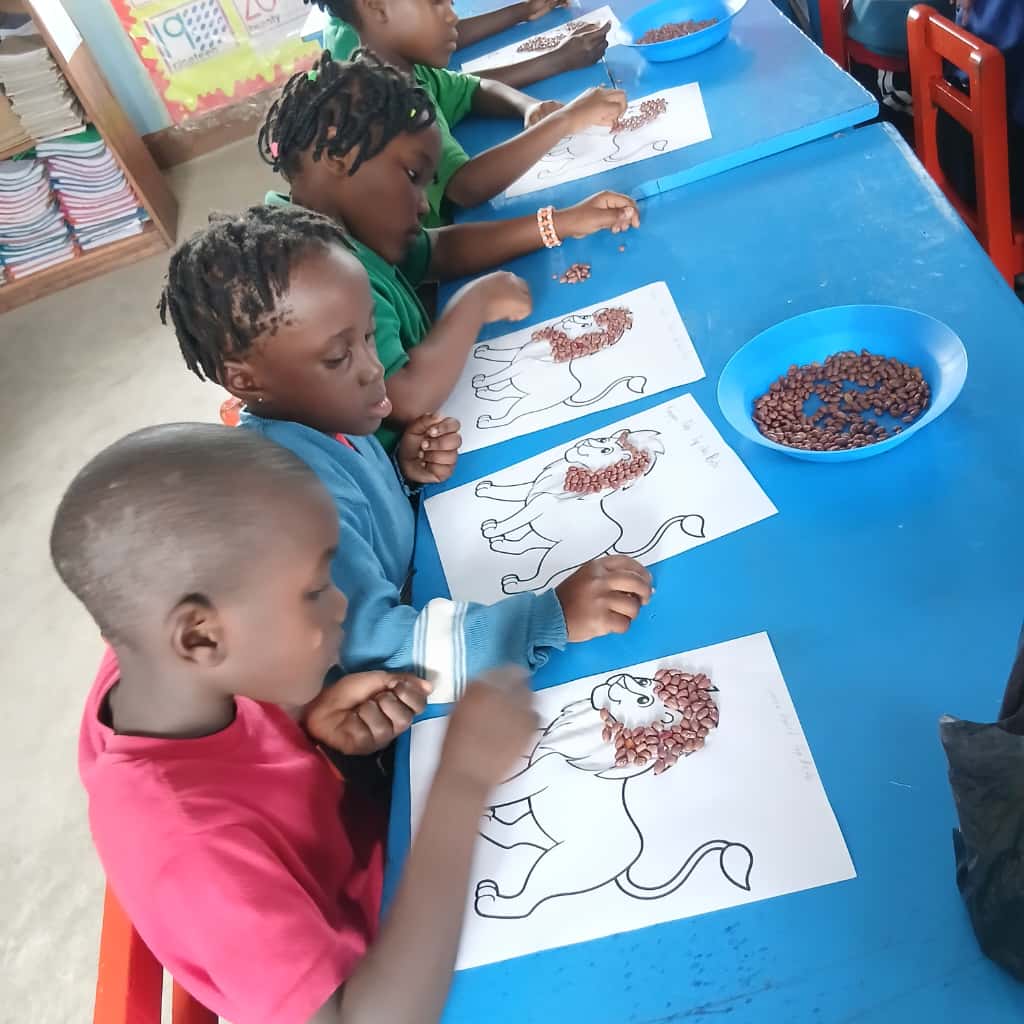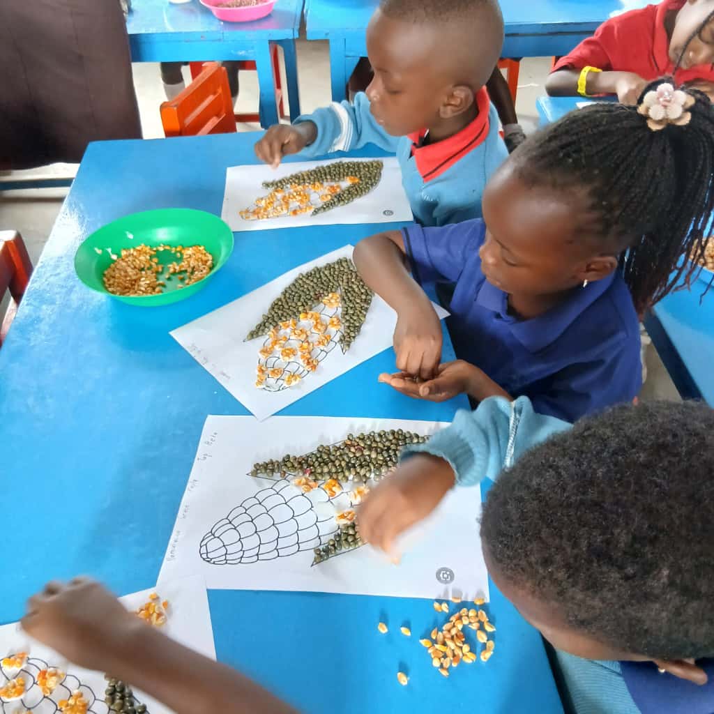 Using seeds of different shapes, sizes, and colours—like millet, beans, and maize—the children carefully arranged each piece to form bodies, wings, patterns, and more. Then, with soft, colourful wool, they added features like feathers, fur, tails, and even grass to complete their masterpieces.